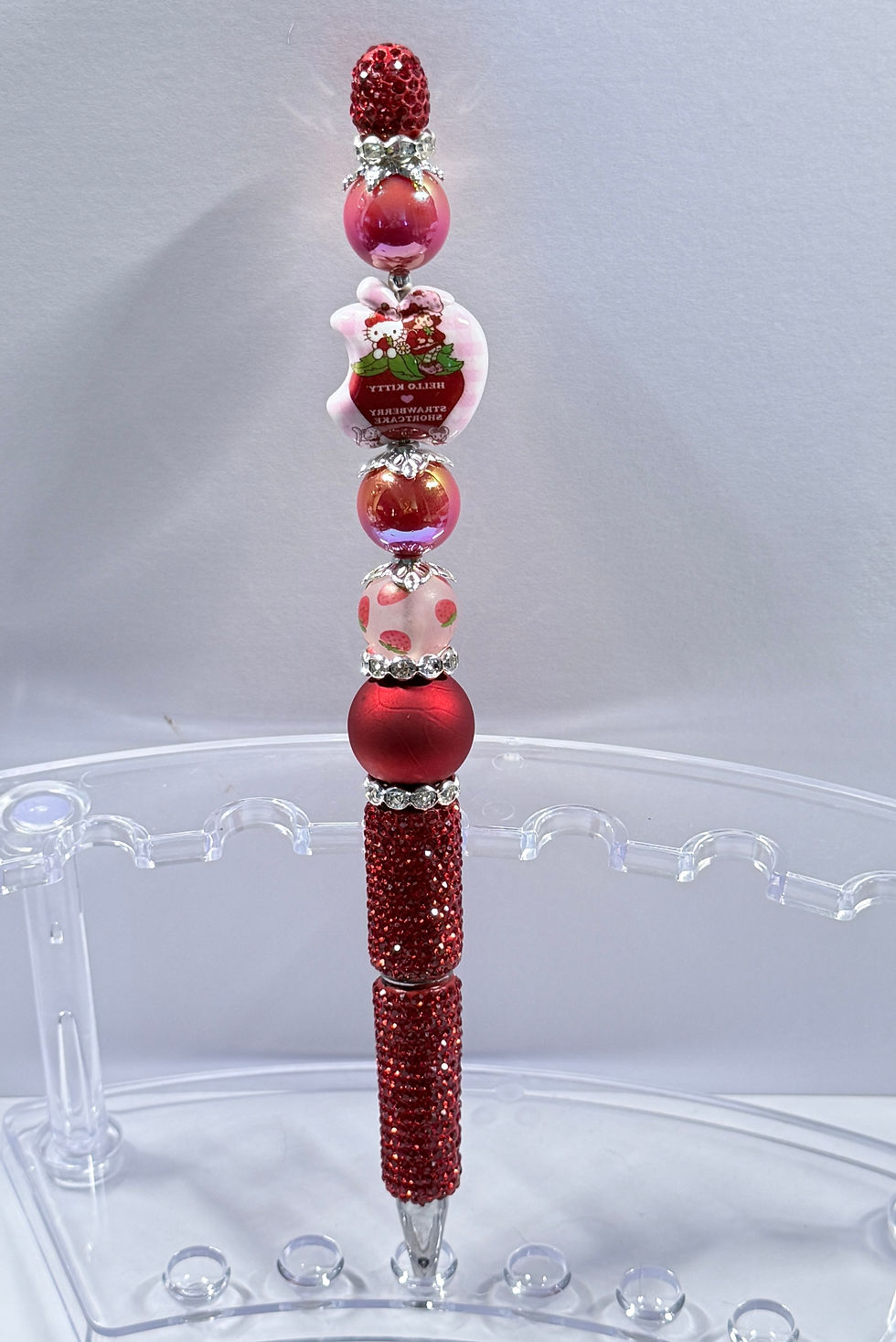 Red Rhinestone Bling Pen w/Strawberry Character Bead